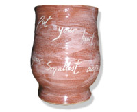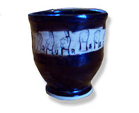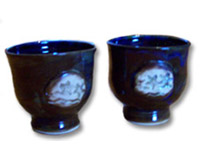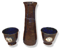 Dove pottery produces sets of wine cups and matching decanters as well as wine coolers in variable themes. Saki sets with carved japanese symbols (kanji) also made upon request.